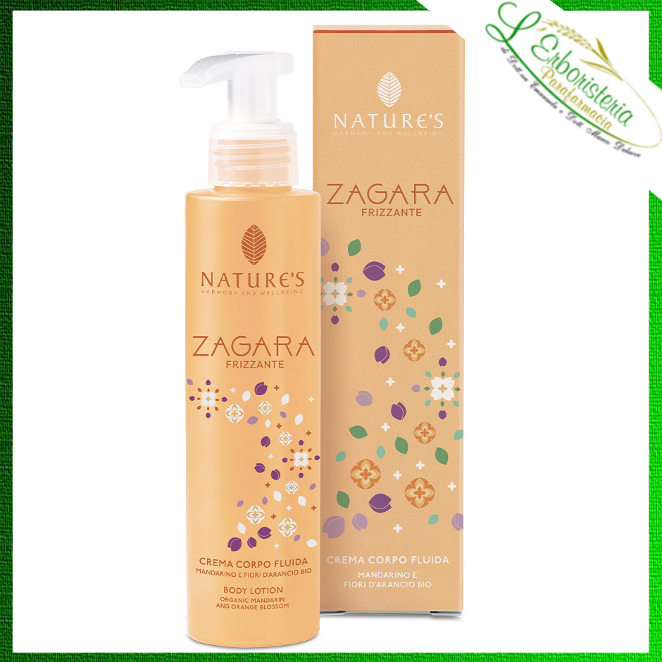 Zagara Frizzante Crema Corpo fluida è formulata con attivi idratanti e oli vegetali, lascia la pelle del corpo morbida e piacevolmente profumata.